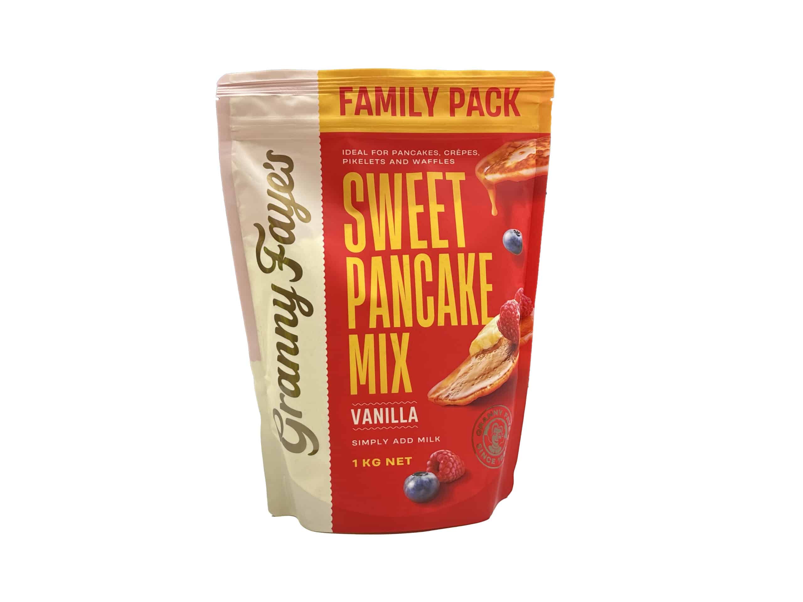 Granny Faye’s Sweet Pancake Mix makes a deliciously light and fluffy pancake that has a hint of vanilla. It is a very versatile pancake mix, perfect for adding a few of your own ingredients like banana’s or berries. It can also be used for pikelets, crepes or in a waffle iron, just by adding more or less milk to alter the consistency